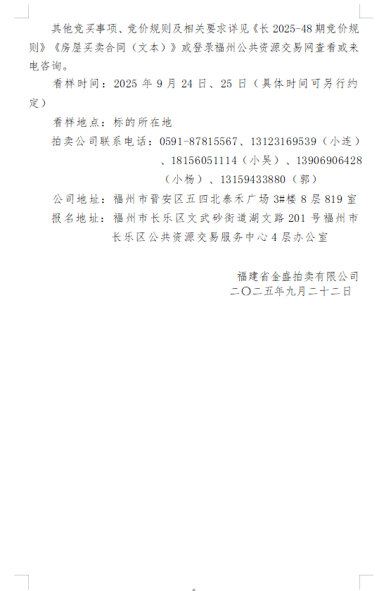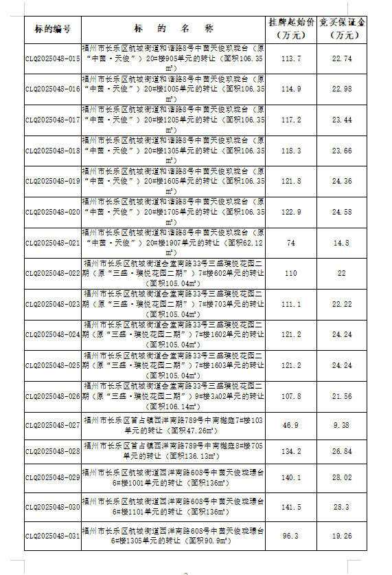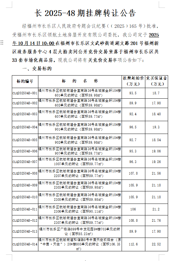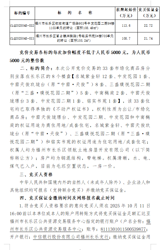 2025年10月14日福州市长乐区共33套市场化商品房(拍卖会)