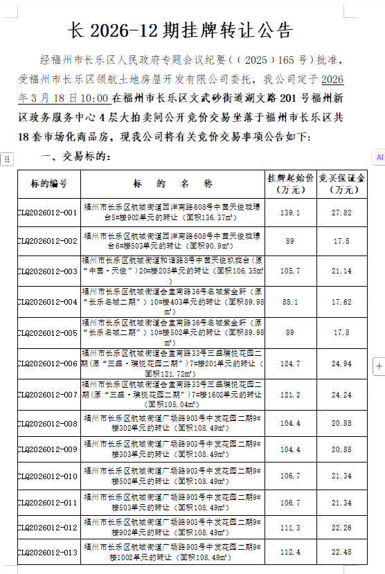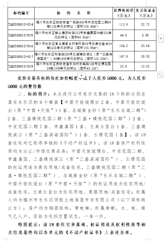 2026年3月18日福州市长乐区共18套市场化商品房(拍卖会)