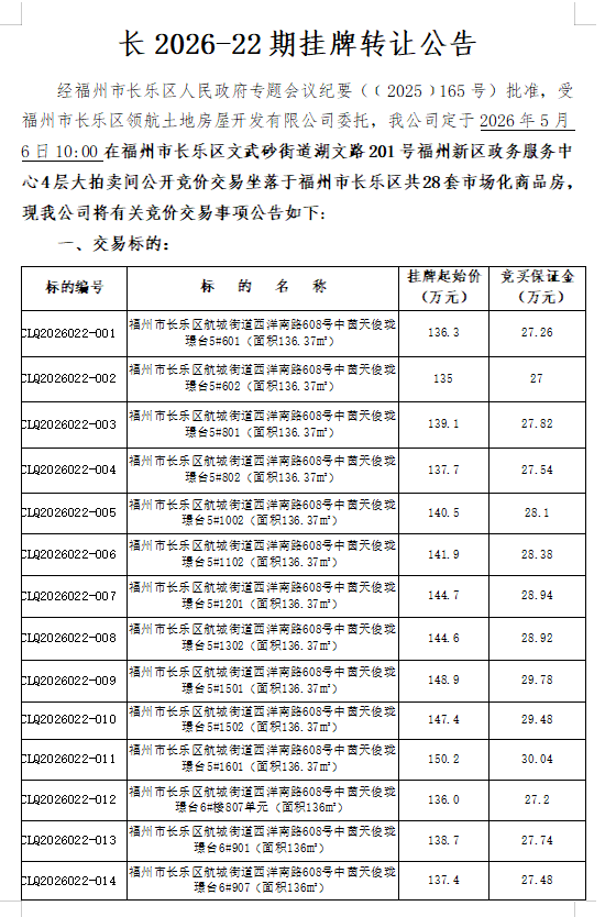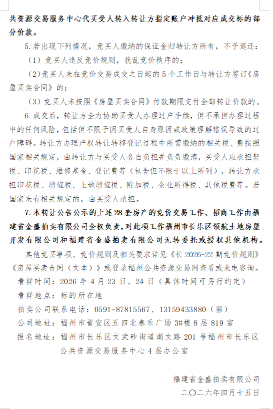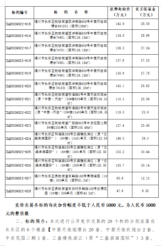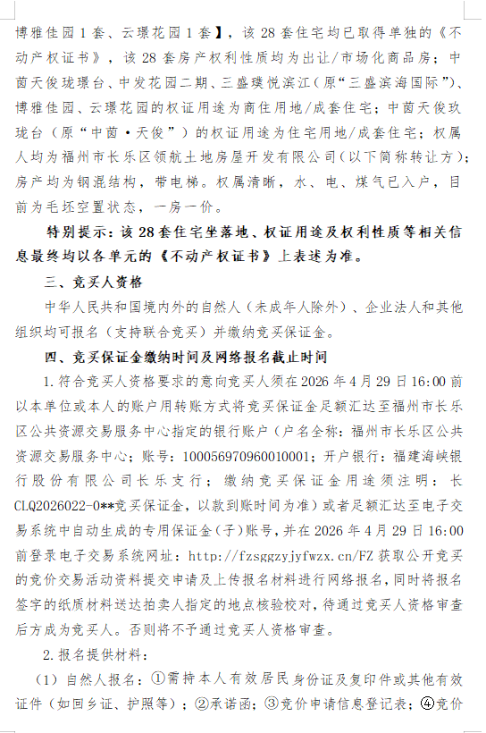 2026年5月6日福州市长乐区共28套市场化商品房(拍卖会)