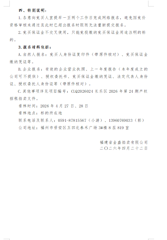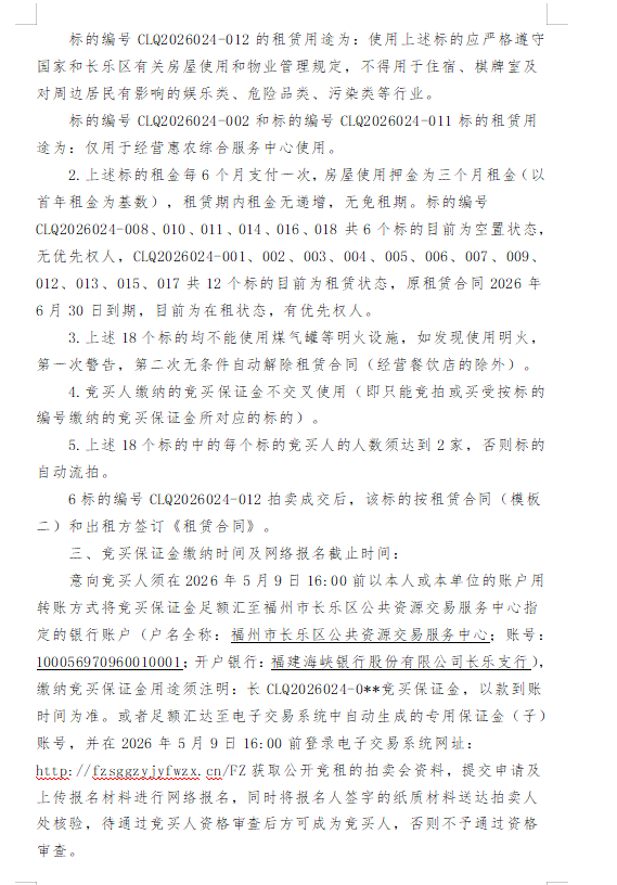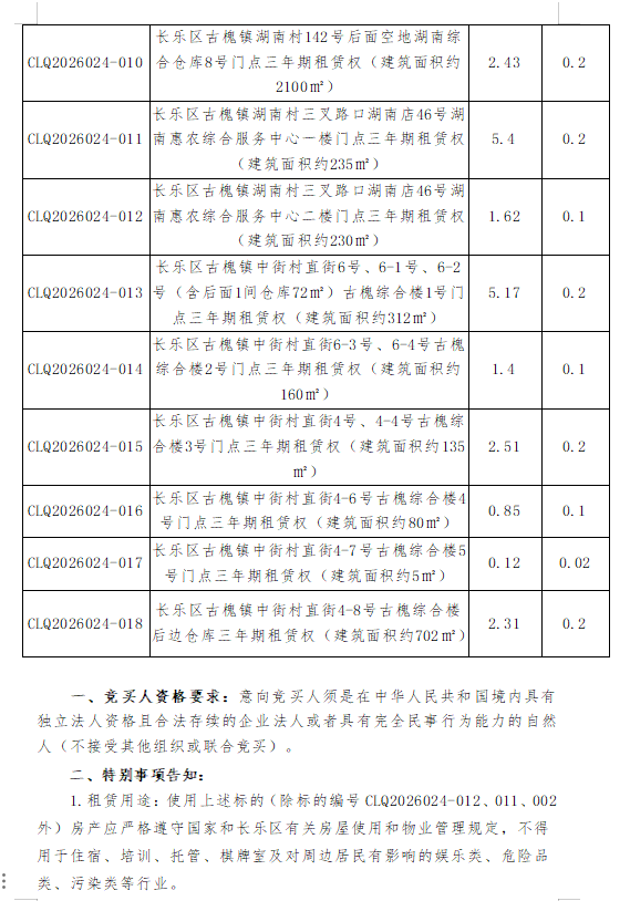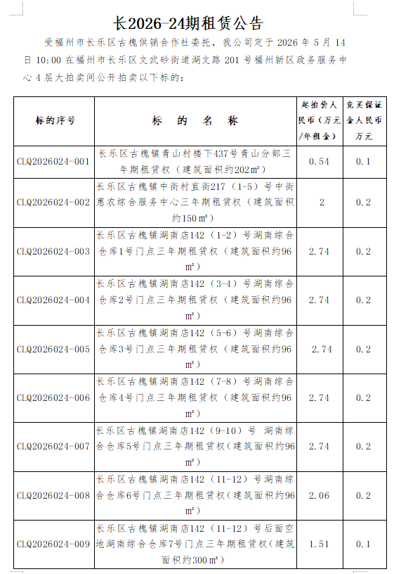 2026年5月14日长乐区古槐供销社青山分部等18个门店三年期租赁权(拍卖会)
